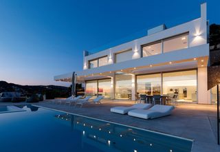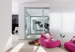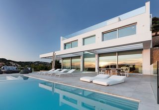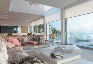 Deze moderne villa met 600m² woonoppervlakte verdeeld over drie verdiepingen heeft een prachtig uitzicht op de kustlijn van Mallorca. Silent Gliss heeft de villa bij de ingang en het atrium uitgerust met witte gemotoriseerde verticale lamellen SG 2950. De gemotoriseerde rolgordijnsystemen SG 4870 zijn geplaatst in alle kamers. Het gemotoriseerde rolgordijnsysteem SG 4880 is extra geplaatst in de woonkamer met een indrukwekkende hoogteverschil van 6,5 m over twee verdiepingen. Deze rolgordijnen zijn gekozen vanwege het consistente uitzicht aan de buitenkant van de villa.